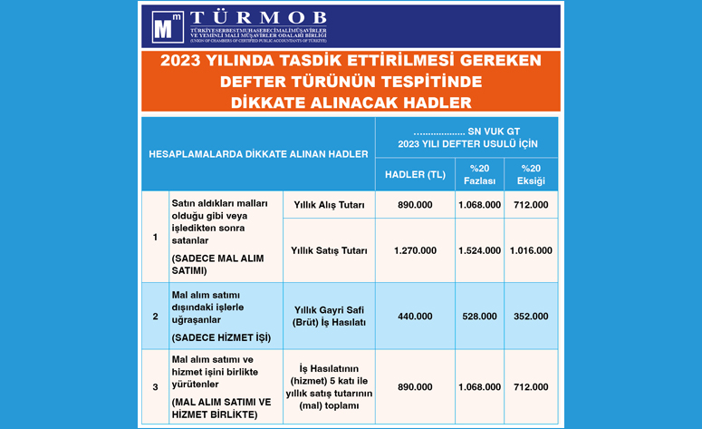 2023 Yılında Tasdik Ettirilmesi Gereken Defter Türünün Tespitinde Dikkate Alınacak Hadler Hakkında Duyuru