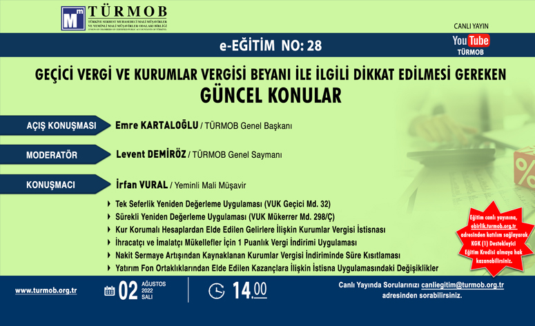 “Geçici Vergi ve KV Beyanı ile İlgili Dikkat Edilmesi Gereken Güncel Konular” e-Eğitim No: 28