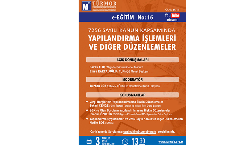 e-EĞİTİM NO:16 “7256 SAYILI KANUN KAPSAMINDA YAPILANDIRMA İŞLEMLERİ VE DİĞER DÜZENLEMELER” 3 Aralık 2020, Saat:13.30